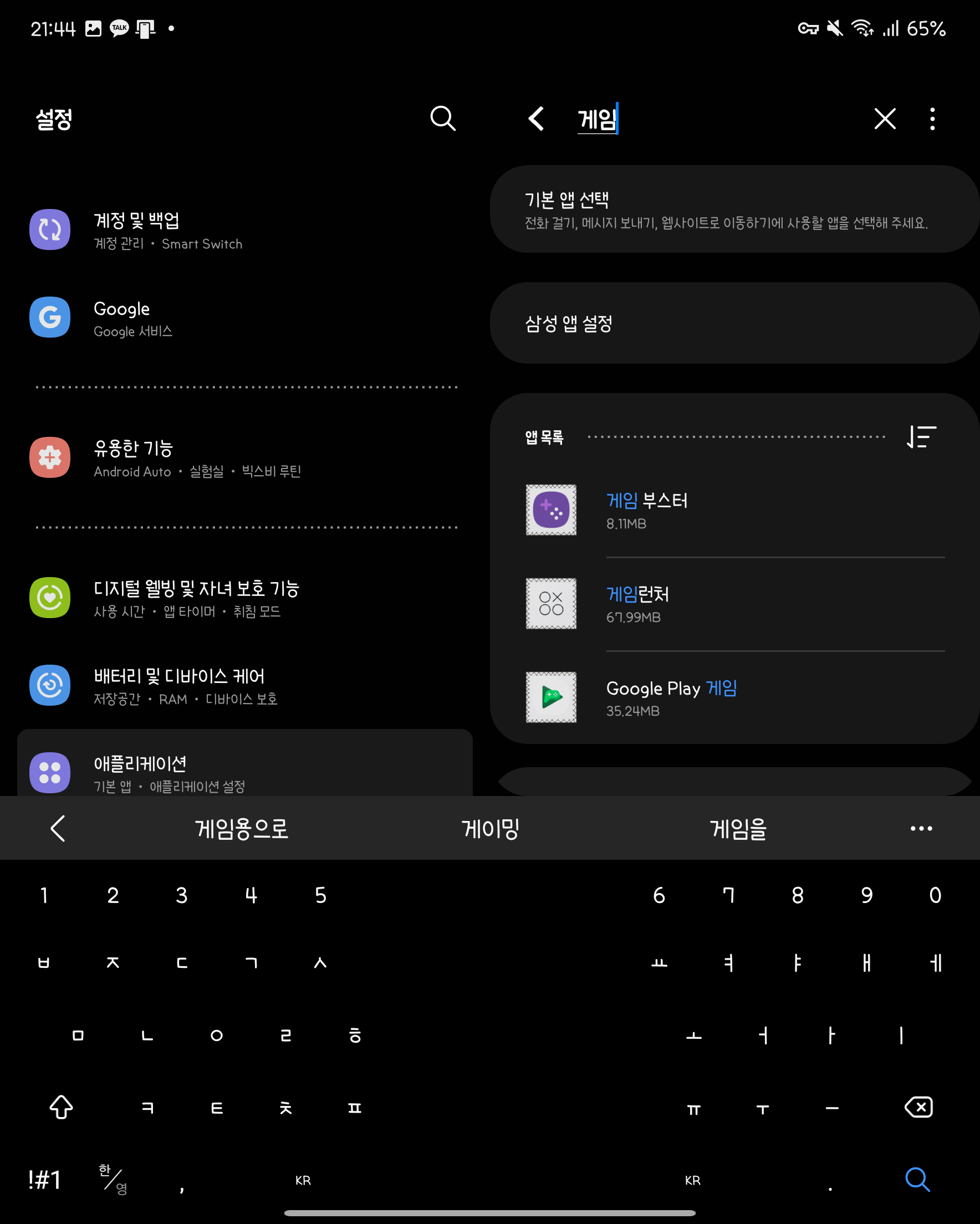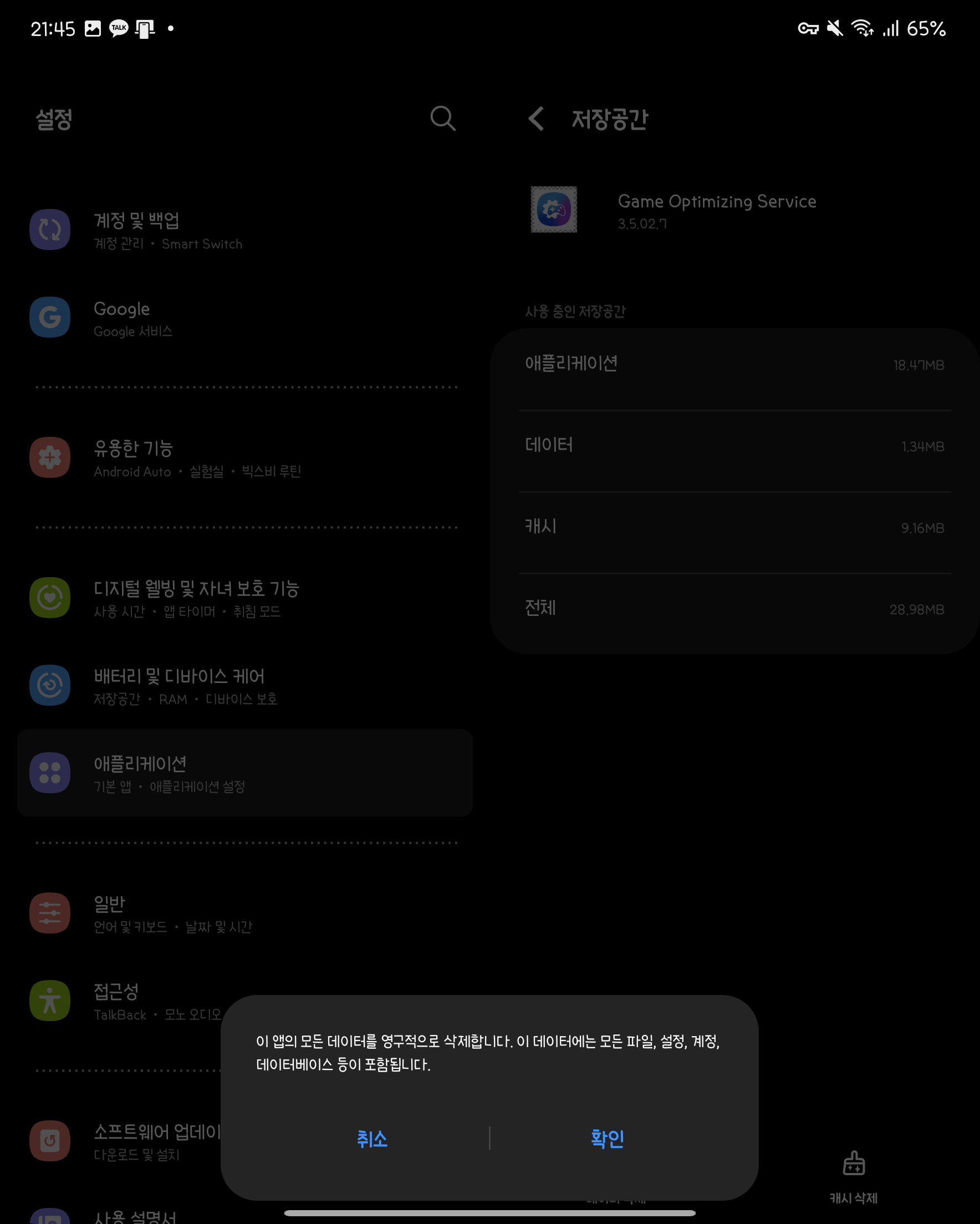 -게임 부스터위 세개의 앱에 대해 클릭해서 앱의 데이터, 캐시를 삭제해주세요.