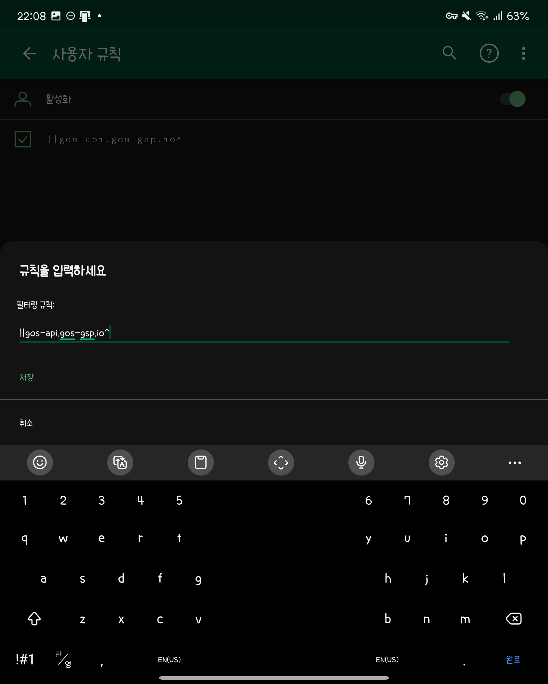 맨 아래 [사용자 규칙] 메뉴로 진입해주세요.