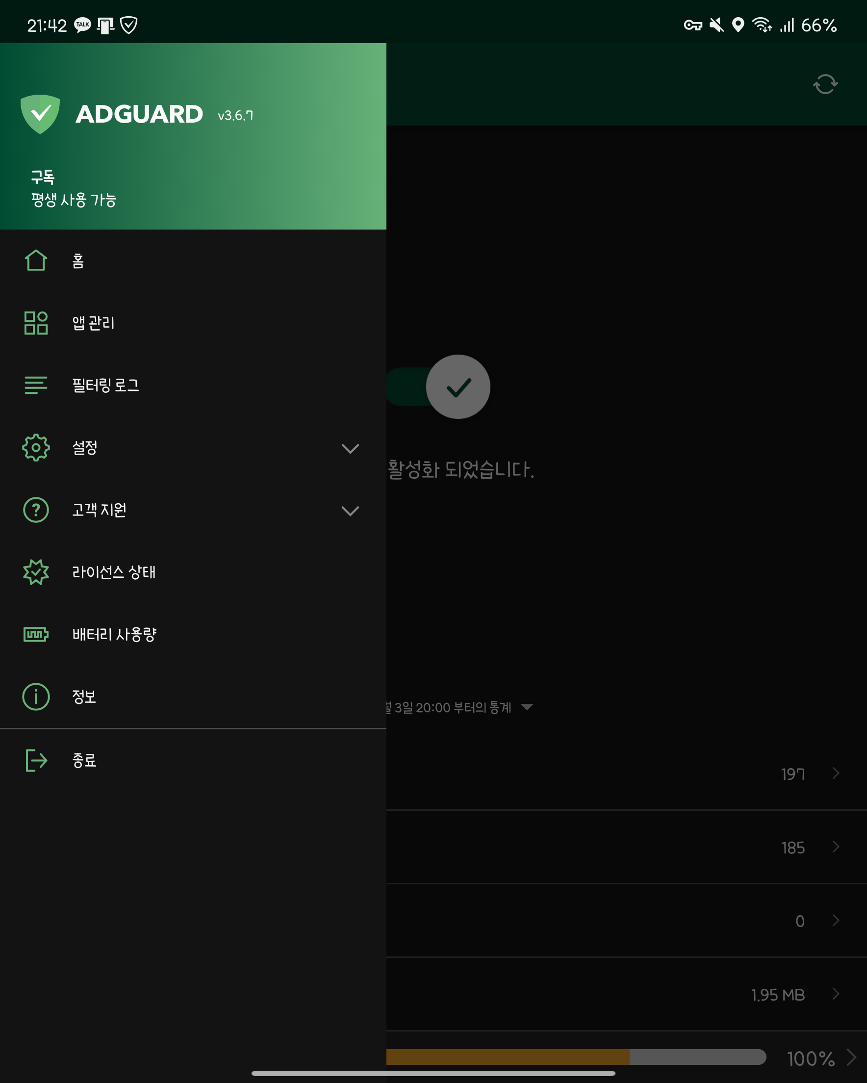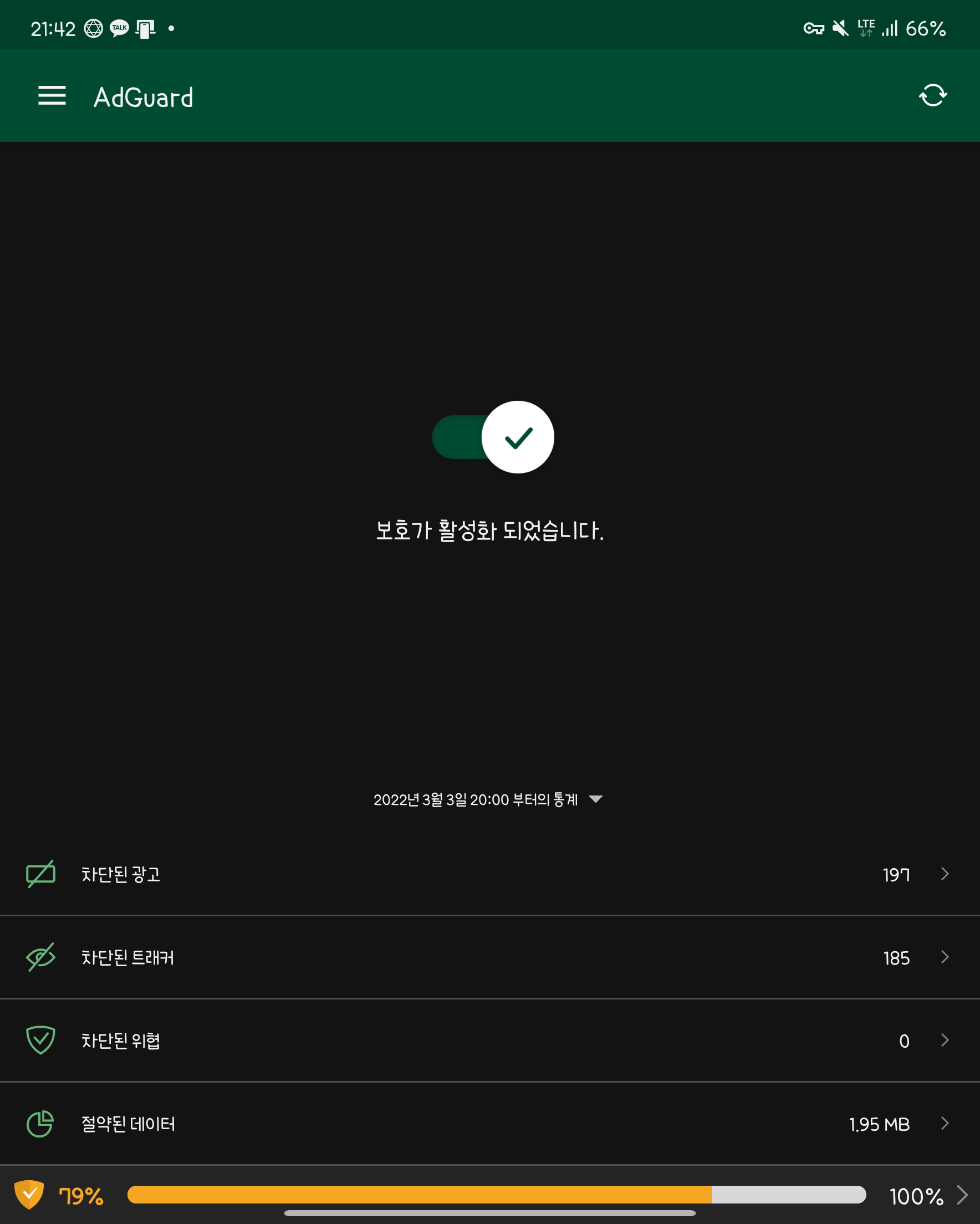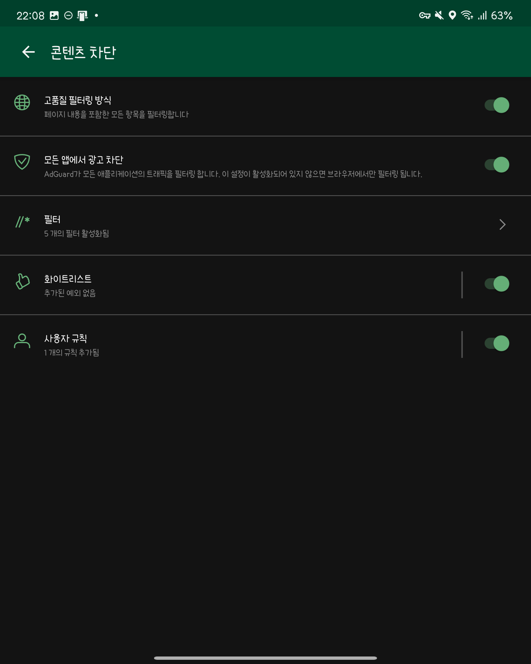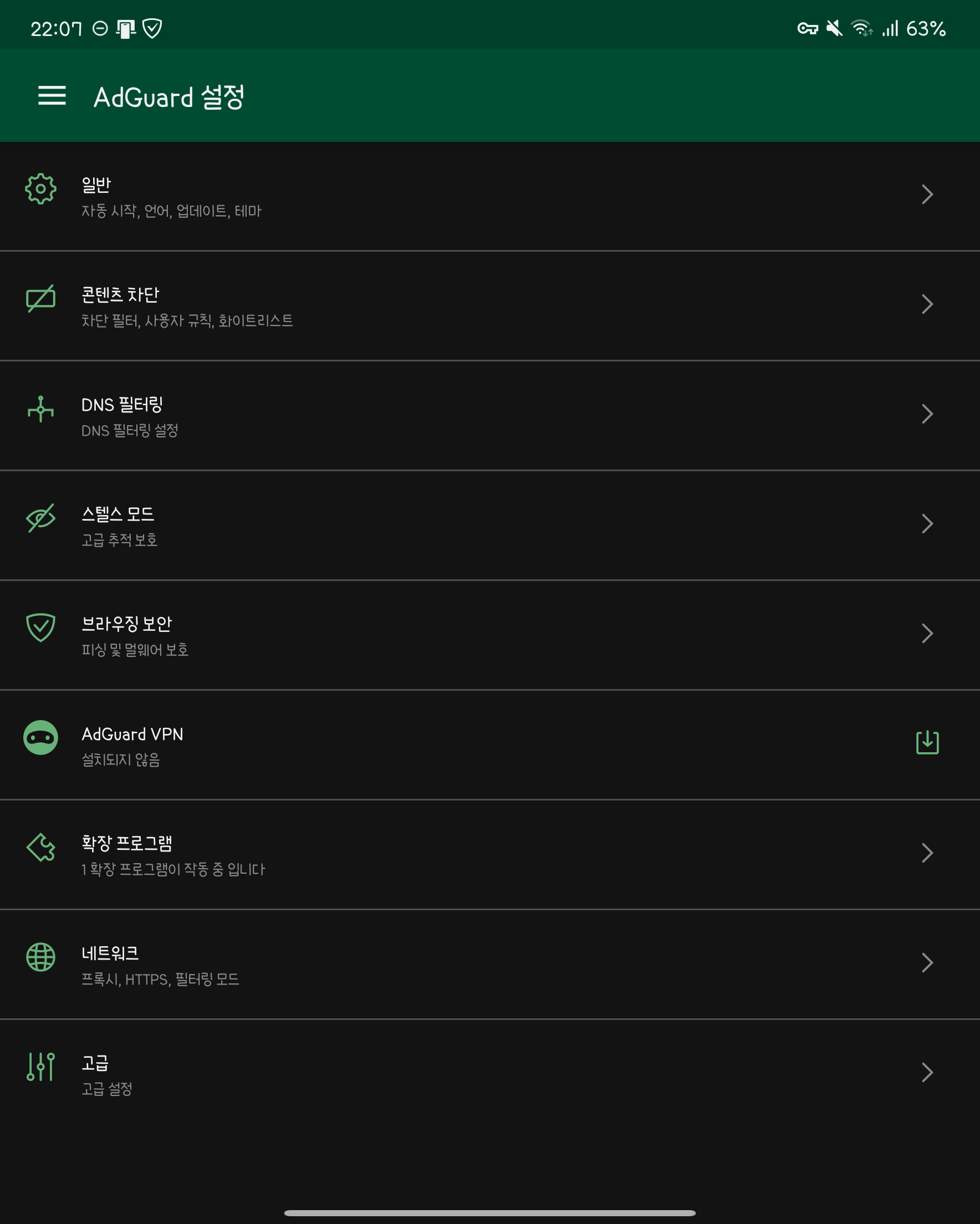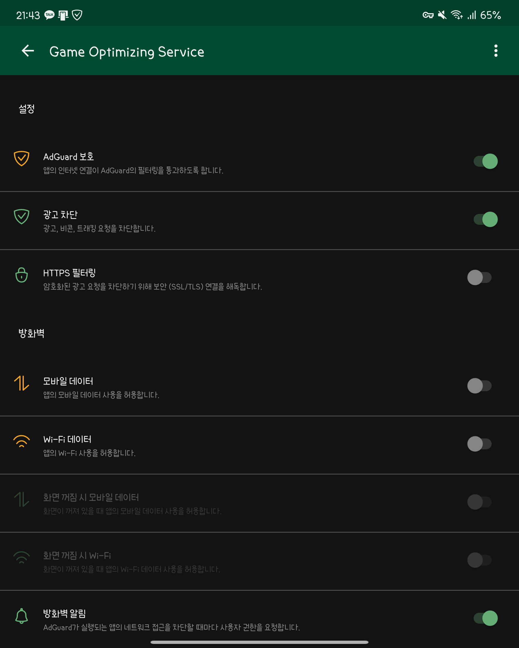 모두 조치를 마치셨다면, 일단 데이터와 와이파이를 끄고 재부팅을 하신뒤 애드가드가 동작하는지 확인 후 데이터 or 와이파이를 동작하시는걸 권장드립니다.