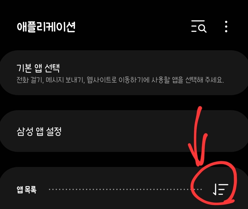 [애플리케이션] 메뉴로 가서 화살표로 가리킨 항목을 눌러주세요.